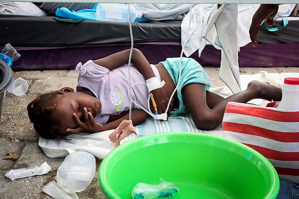 The earthquake in January 2010 killed tens of thousands of Haitians, and it was followed several months later by an outbreak of cholera, a disease that had never before been documented in Haiti. Studies of the outbreak indicate that poor sanitation at a United Nations camp resulted in sewage contamination of local water supplies, and phylogenetic analysis of the Haiti V. cholerae strains and strains from around the globe indicate the strain was most likely accidentally brought to the camp by U.N. troops from Nepal.