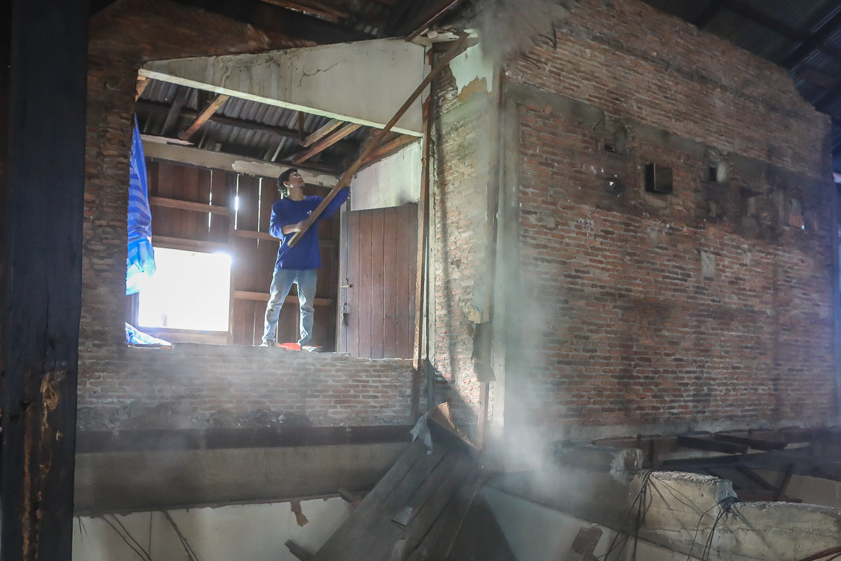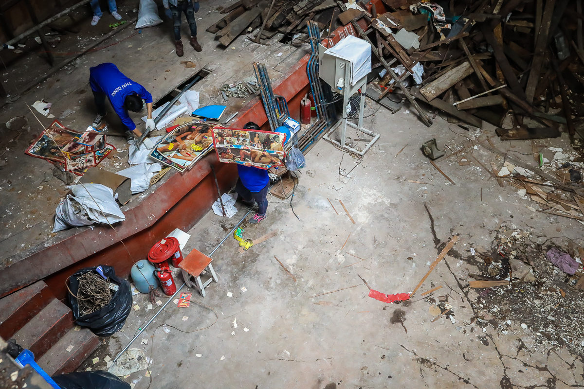 I walked by the hidden trok (side street), looking for a restaurant, and walked straight into the demolishing. They let me enter, and I got a few shots. While I was there they found old movie posters from the 70’ and 80’s. Some posters were for XXX-rated movies. At the mostly such movies were shown to my understanding.