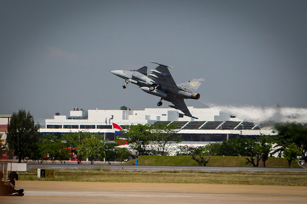 Today I went to the “Breitling Jet Team under the Royal Sky” event together with my friend Christer. It was a great day out. Before the main attraction there were various entertainment. Royal Thai Air Force showed up some of their planes including JAS Gripen and a F-16.